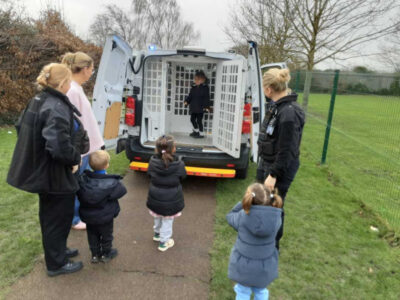 A highlight of the week was a special visit from the police, who brought their police van for the children to explore. The children had the opportunity to try on police hats and vests, sit inside the van, and even hear the sirens and see the flashing lights up close. It was a thrilling experience that really brought the role of our local heroes to life!